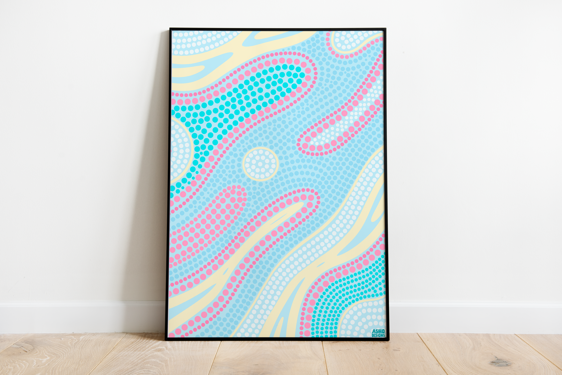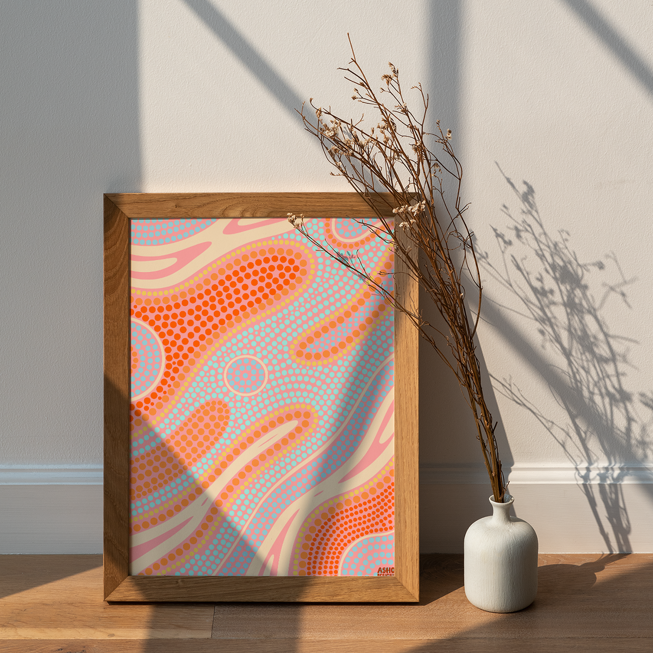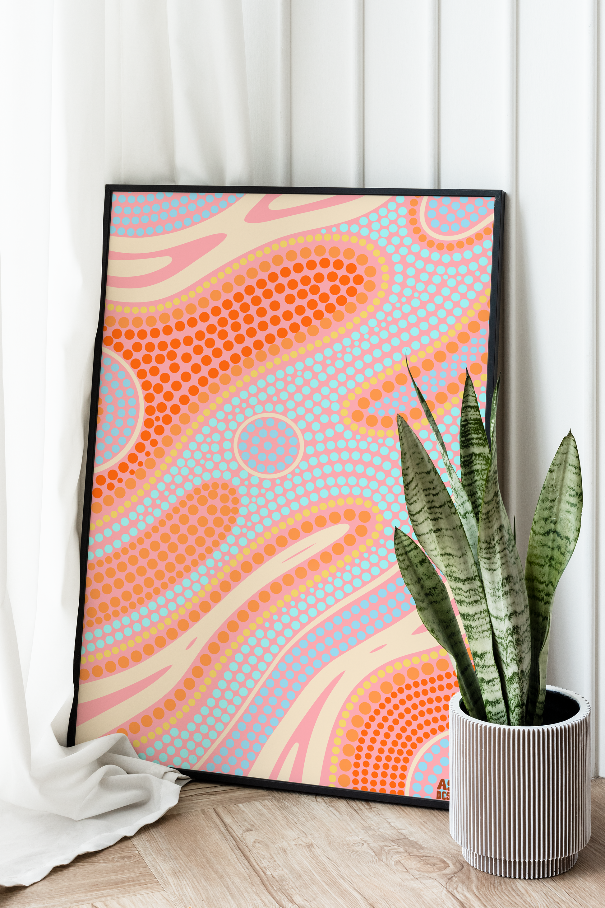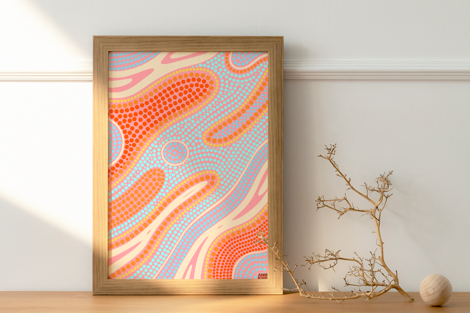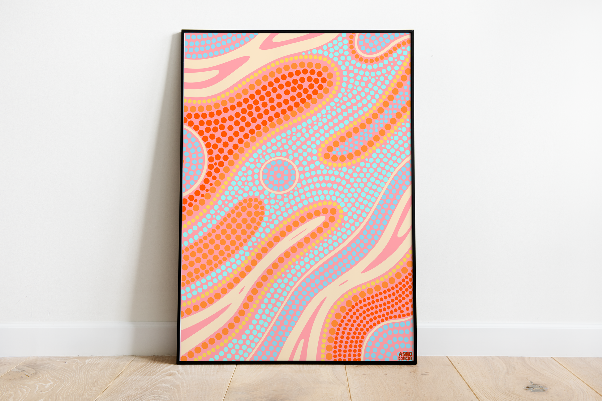 This abstract dot digital art print is the perfect way to add a pop of color and personality to your walls. Display it in a frame or as a poster in your bedroom, dorm, living room, office space, or any place you want to make colorful!