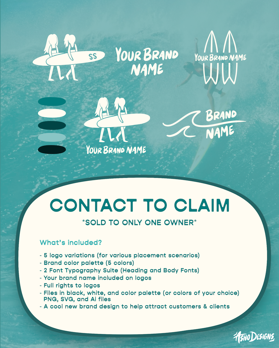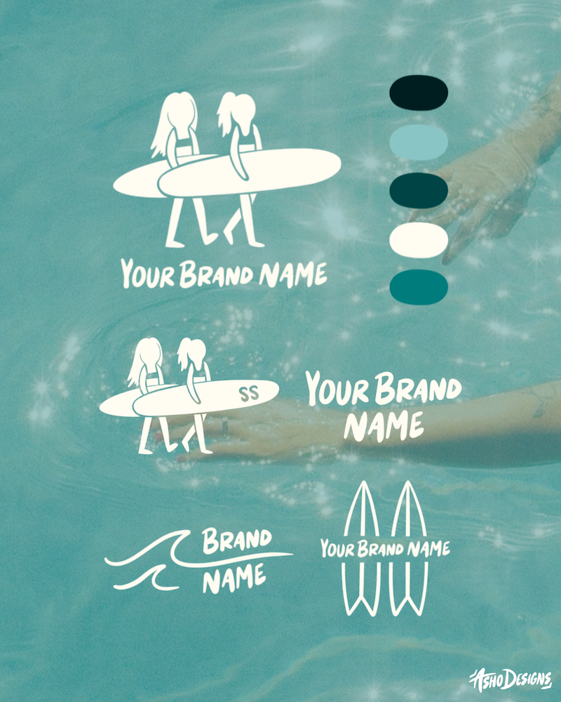 Premade Surfer Girls Logo Suite, Mini Brand Identity Kit
