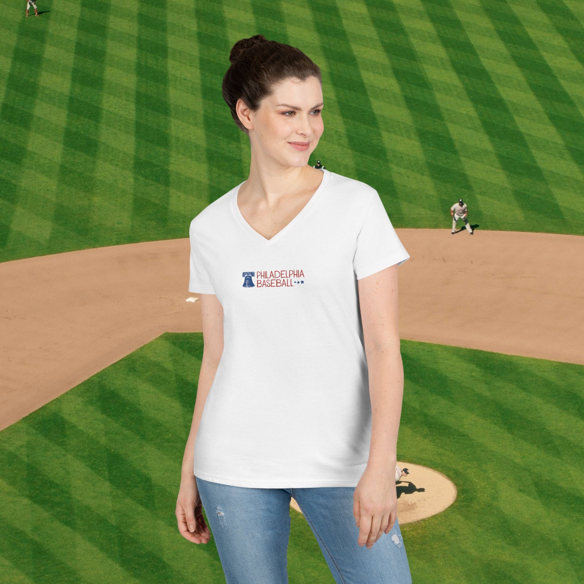 Vintage Philadelphia Baseball V-Neck T-Shirt for Women